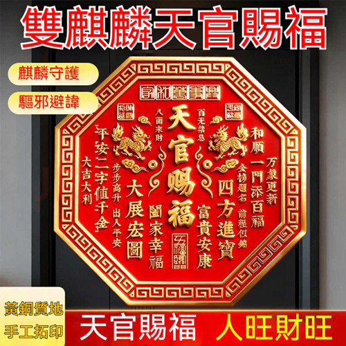 居家納福必備!雙麒麟天官賜福八卦牌,黃銅質地手工精雕,鎮宅辟邪守護平安,招福納財人旺財旺,喬遷開業好禮,為家中帶來滿滿好運!