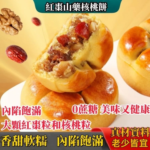 【紅棗山藥核桃餅】肉餡飽滿 大顆紅棗核桃粒 0蔗糖 高營養 綿軟香甜 好吃不膩!